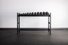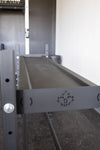 Coupled with our flat or angled 10ga steel shelves which are perfect for kettlebells or dumbbells will not only be protected from damage but will remain in place due to our unique tray design.