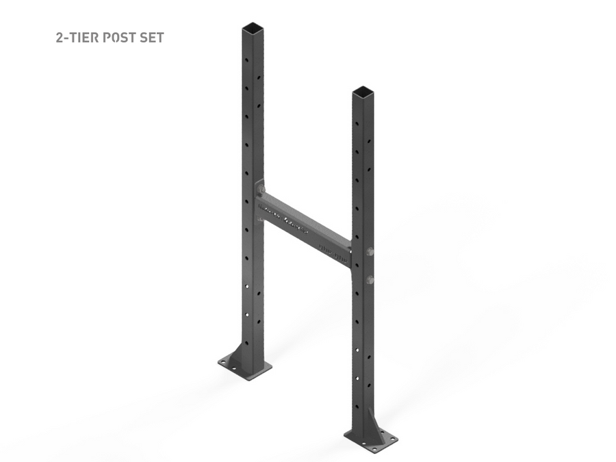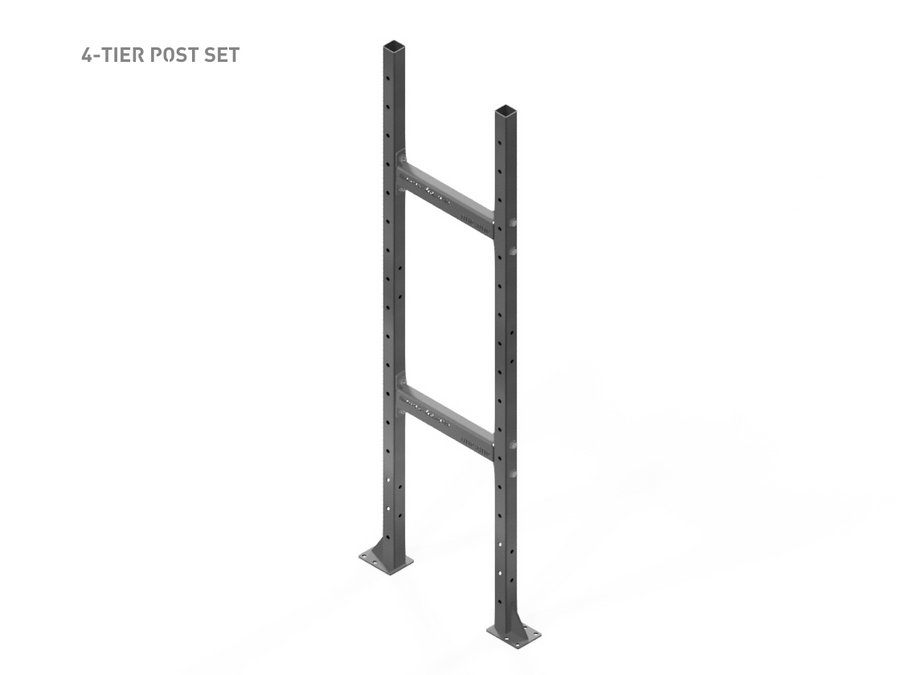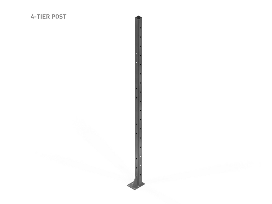 2'' rails set 13'' apart as the perfect storage solution for plates / medicine balls. Mounting plates have a secondary set of holes to angle the rails if required.