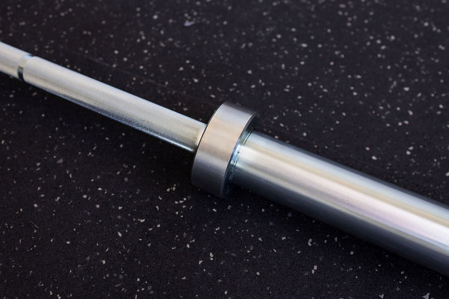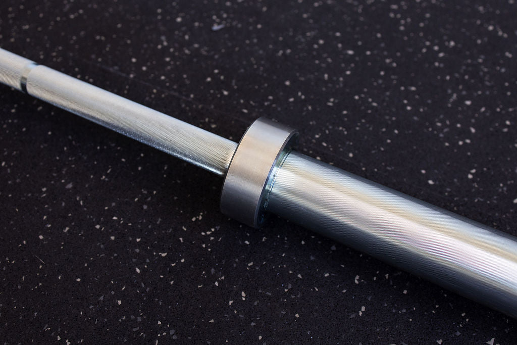 It features 215k PSI heat-treated steel with 25mm thick shaft with a bright zinc finish, 4 precision needle bearings and refined knurling suited to high-performance training with IWF knurl marks (no center knurling or powerlifting marks) it is suited to high-performance training.