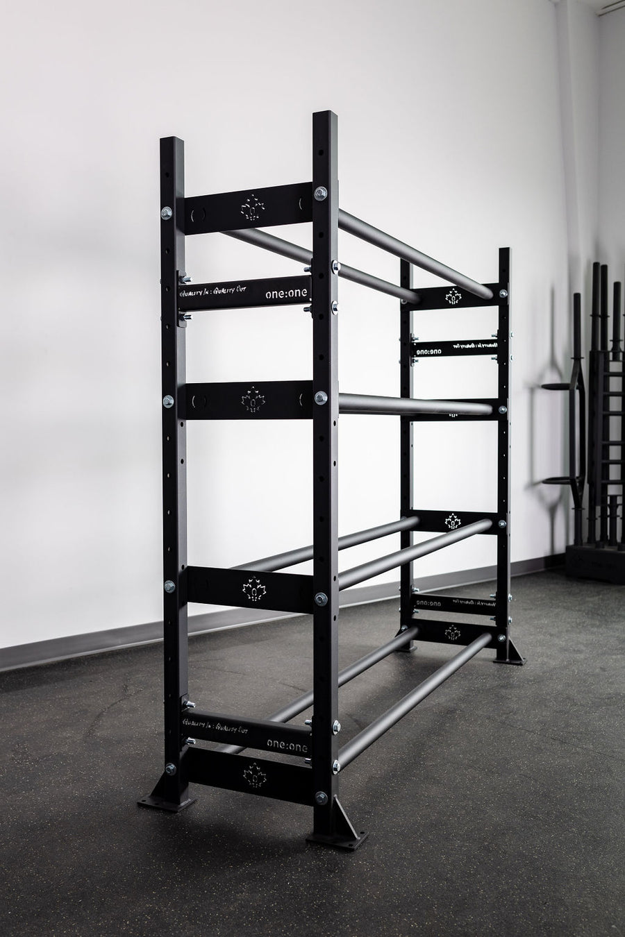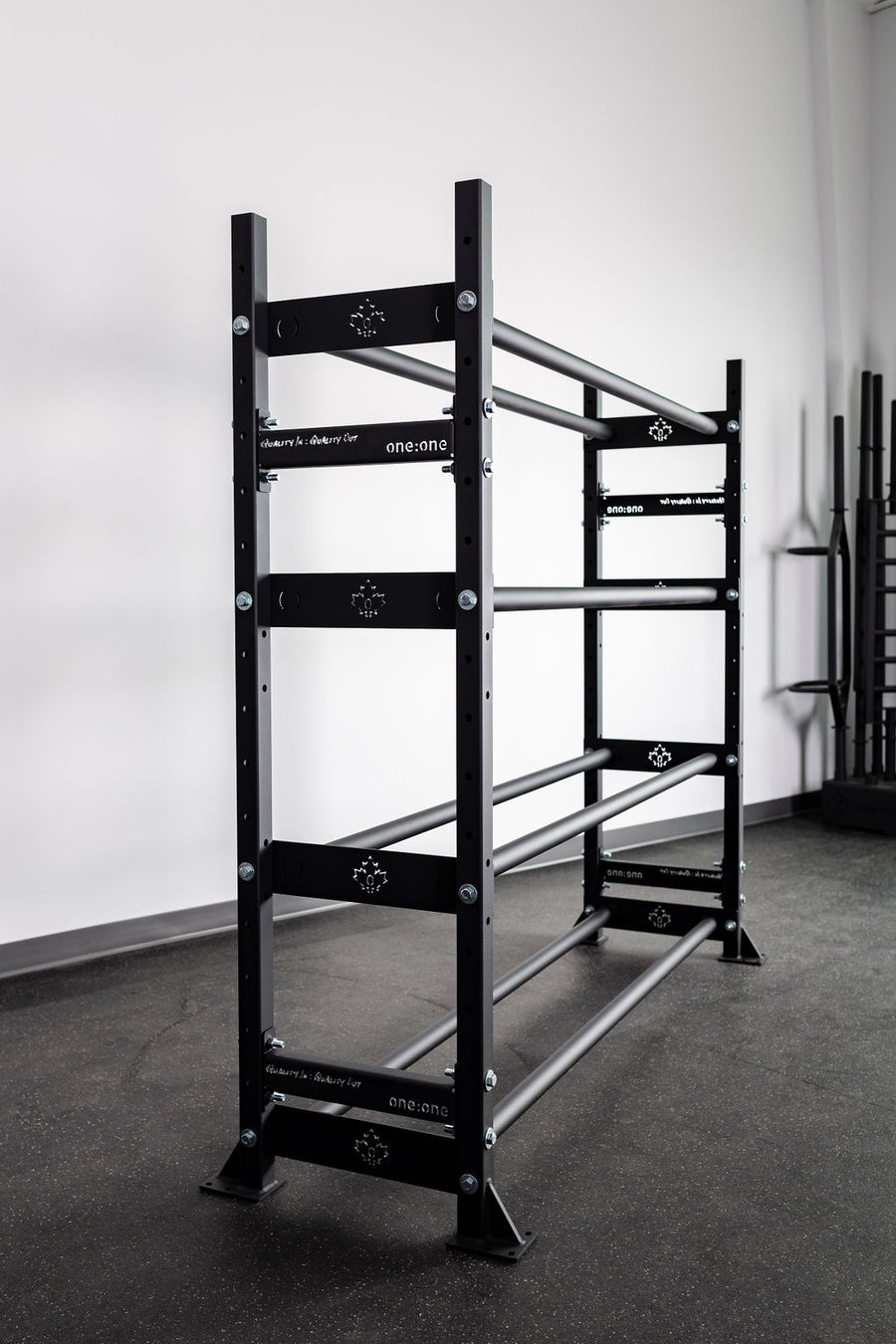 The One:One Storage Shelf allows you to increase your floor space by organizing your workout gear on a versatile, tiered storage shelf system.