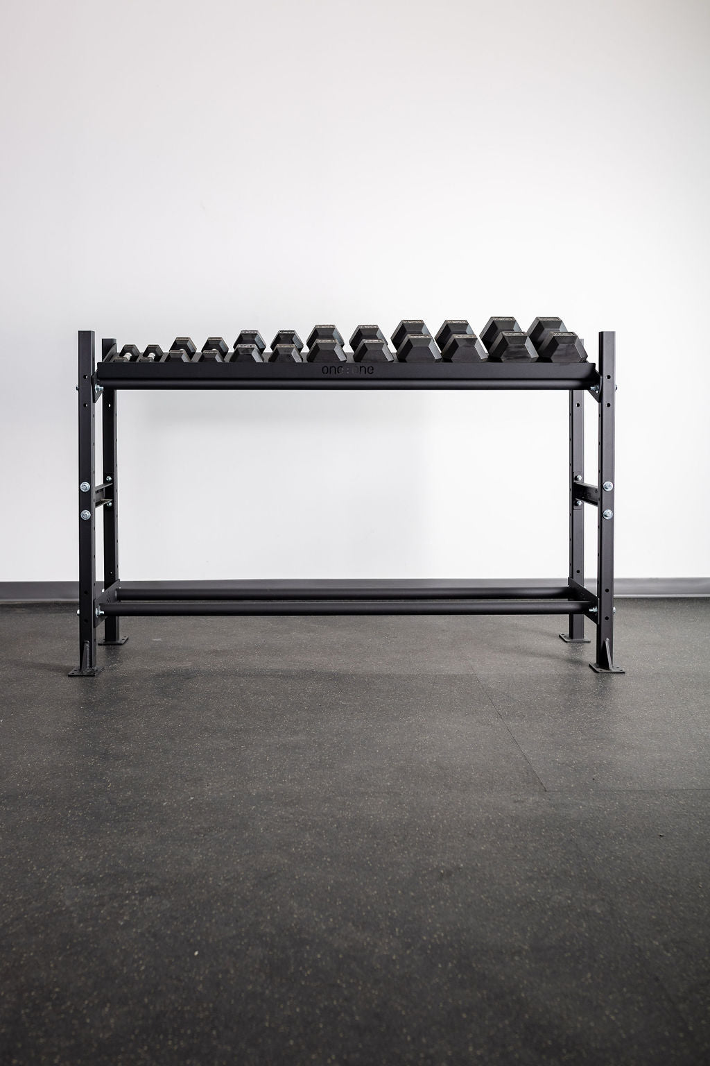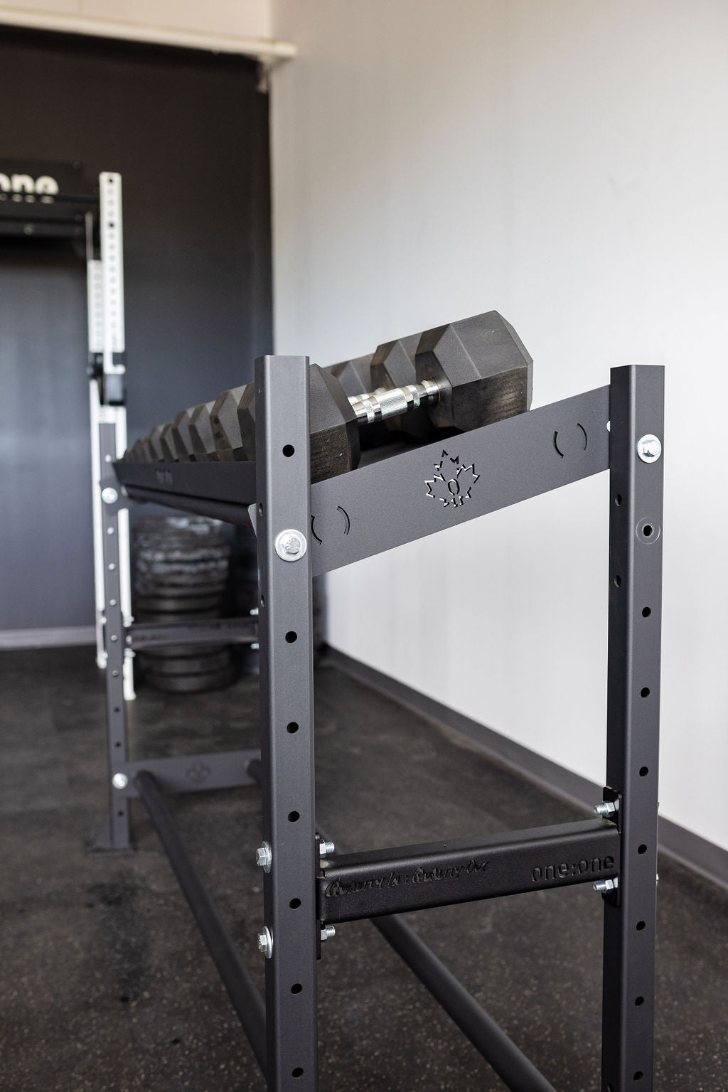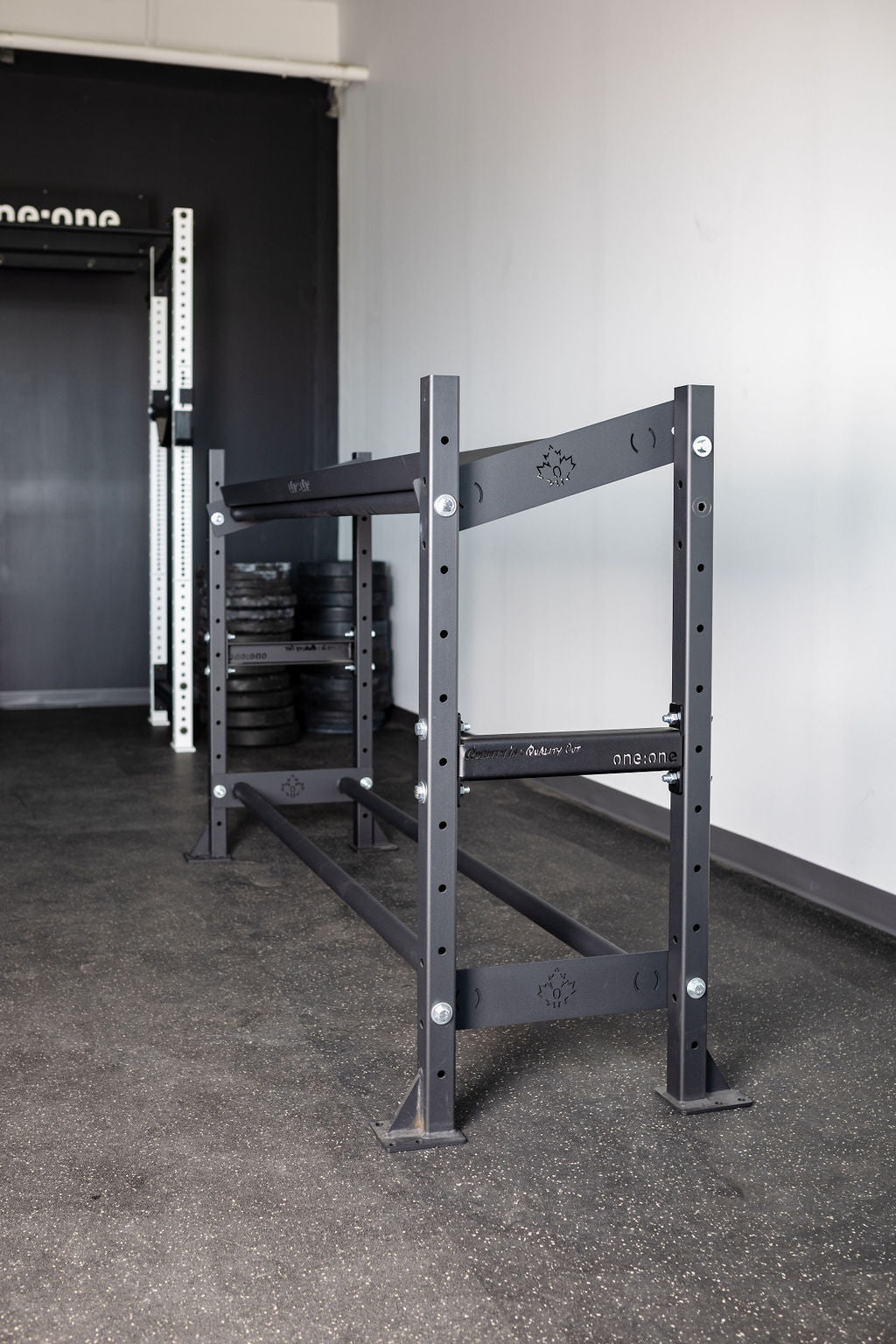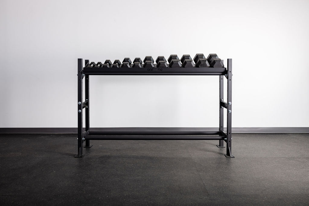 The One:One Storage Shelf allows you to increase your floor space by organizing your workout gear on a versatile, tiered storage shelf system. Our 4' Shelf includes (2) rail shelves and is available in 4' or 6' lengths. Our rail-style storage design is the perfect option for storage of plates, med-balls, and gym mats.